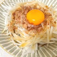 新玉ねぎの甘みとシャキシャキした食感が魅力的な一品です。スライサーで薄切りにした玉ねぎを水にさらすことで辛みが抜け、ポン酢と鰹節の旨味がマッチしたさっぱりとした味わいを楽しめます。とろけるような卵黄を崩して食べると、まろやかさが加わり、より深い味わいに。作り方も簡単でヘルシーなので、お酒のおつまみやサイドメニューとして重宝します。