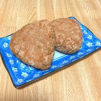 - 5 中火に熱したフライパンにごま油をひき、ラップを外した4を入れます。両面に焼き色がつくまで合わせて6分程焼き火から下ろします。