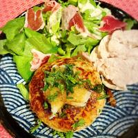 - 4 中火に熱したフライパンにごま油をひき3を入れ、中に火が通るまで弱めの中火で時々返しながら15分程、蓋をして蒸し焼きにします。