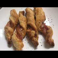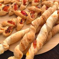 パイシートは焼くと戻りやすいのできつめに捻っても問題はないです。パイシートの幅はベーコンに合わせてカットしてください。粉チーズにパセリ、タイム、ローズマリー、オニオンパウダーをミックスするとさらに香ばしく焼きあがります。