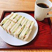 キュウリも挟みました。ちょうど良い大きさで食べやすいです。おうちで作るサンドイッチはフレッシュでいいですね