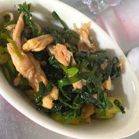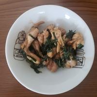 - 3 中火で熱したフライパンに2を入れ、塩こしょうをふって炒め、色が変わってきたら1を入れてさっと炒めます。