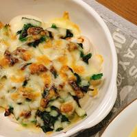 里芋、ほうれん草、ピザ用チーズ、赤味噌