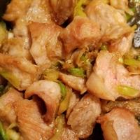 野菜室に残ってた細い長ネギと賞味期限ギリギリの焼肉用豚バラで作って見ました😂