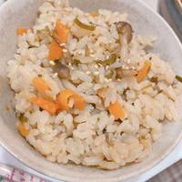 - 3 塩昆布、1を入れて軽く混ぜ合わせ、炊飯します。