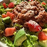 レタス4枚、アボカド丸1個、トマト半分、チリパウダーを一味唐辛子で代用 以外はレシピ通りで二人分作りました!温泉卵(になるはずだったゆで卵)もあとから加えたらより美味しくなりました!