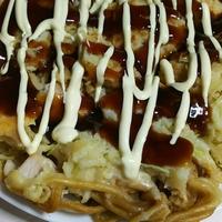 麺を冷凍うどんで代用しました。ボリューム満点!後先考えず大きく作りすぎて、ひっくり返すのに苦労しました^^;