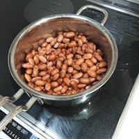 - 1 鍋に金時豆とたっぷりの水を入れてふっくらとするまで5時間程おき、戻します。