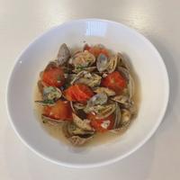 - 1 耐熱皿にアサリ、ニンニク、(A)を入れ、ふんわりとラップをし、500Wの電子レンジで6分程加熱します。