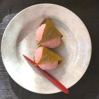 関西風桜餅のご紹介です。炊飯器で炊いたピンクのもち米を、粗く潰し、市販のこしあんを包みました。桜の葉の塩漬けで巻くと、香りや風味がもち米に染みこみ、美味しくいただけます。簡単にお作りいただけるのでぜひお試しください。