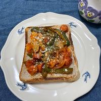 カリッと焼いた食パンに、ナポリタンの具材をのせていただくトーストのご紹介です。ナポリタンの具材と味つけは、パスタだけでなく、パンにのせてもおいしいですよ。朝ごはんやブランチにもおすすめなので、ぜひお試しくださいね。
