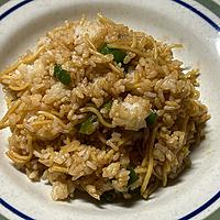 - 4 3の麺がほぐれたら、ご飯を入れて炒め、(A)を入れてよく混ぜて炒めます。