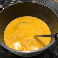 - 5 鍋に4と牛乳を入れて弱火で加熱し、沸騰直前で火を止めます。
