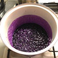 - 1 鍋にハックルベリーを入れ、かぶる程度の水を注ぎ、中火にかけます。