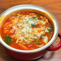 豚バラ肉とトマトの旨味が溶け込んだスープは、チーズのコクと相まって絶妙な味わいに。玉ねぎやしいたけ、キャベツ、もやしなど、冷蔵庫の余り野菜を加えてアレンジ自在です。ジュワッと溶けたチーズがトマトの酸味を程よくまろやかにし、うどんとの相性も抜群。スープまで飲み干したくなる美味しさで、寒い日のランチにぴったり。作り方も簡単で、一人分からでも手軽に楽しめます。