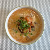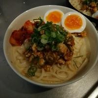 キムチと豆板醤多めに入れたので辛かったですがうどんなのでつるつる食べやすくておいしかったです♩