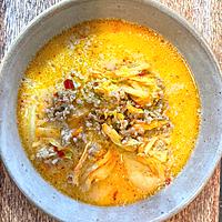 - 5 器に盛り付け、3を注ぎ、キムチをのせ、小ねぎを散らして完成です。