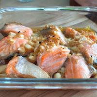 鮭がなかったのでタラで作りました。玉ねぎとニンニクかなり多め、レンジの加熱を長くやりました。とても美味しかったです。