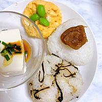- 7 大葉を敷いたお皿に、5、白いりごま、6、梅干し、絹ごし豆腐、4、小ねぎ、3、枝豆、1、ぶどうを盛り付けて完成です。