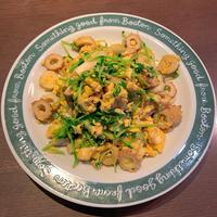 - 3 卵が固まったら(A)を加えて中火のまま全体がなじむまで炒め合わせ、火から下ろし、お皿に盛り付けて完成です。