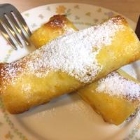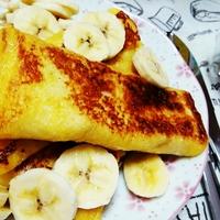 チョコバナナをサンドしたフレンチトーストのご紹介です。くるくると巻き上げた食パンを卵液に浸し、有塩バターでこんがりと焼き上げました。とろけるチョコレートと甘みが増したバナナが食欲をそそります。おやつやティータイムにいかがでしょうか。ぜひ、お試しください。
