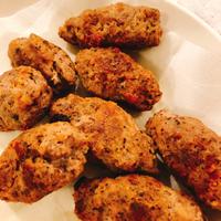 食レポ参考にお豆腐少し入れて先にボイルしてから焼きました。クミン、カルダモン、セージなど入れて。粒マスタードで食べてワインがすすみます。