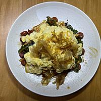 - 8 お皿に5、7の順に盛り付け、かつお節をかけてできあがりです。