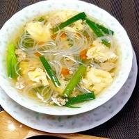 ピリ辛 ひき肉とニラの春雨スープ レシピ・作り方
