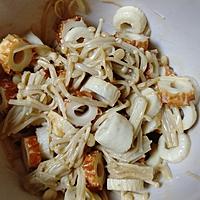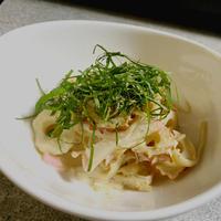 - 4 ボウルに(A)を入れて混ぜ合わせ、2、3を加えて全体に味がなじむまでよく和えます。