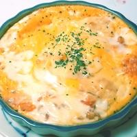 オーブントースターで手軽に作れるのが魅力的です。ケチャップライスの上にふんわり卵をのせ、チーズをトッピングして焼き上げると、チーズがカリカリに香ばしく変化します。ポイントは、ご飯を平らにしっかり敷き詰めること。オーブンの温度と時間は様子を見ながら調整すると、とろ~り半熟の卵に仕上がります。フライパン要らずの楽チン料理で、トマトリゾットなどアレンジも自在です。