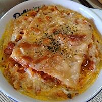 - 9 耐熱皿に7を入れ、その上にスライスチーズをのせ、8をかけてオーブントースターで10分焼きます。