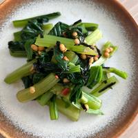 小松菜は一度加熱してから調味料と和えることで、味が染みこみやすくなります。 小松菜はお好みの葉もの野菜で代用できます。