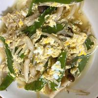 もやしとしめじも加えて。味はちょっと薄めでもいいかも。美味しかった。