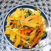 たくあん消費に副菜で作りました。彩りもよく美味しかったです。簡単ですが、少し変わった斬新な一品になると思います。