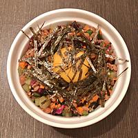 - 4 器にごはんをよそい、3をかけ、トッピングの材料をのせて完成です。