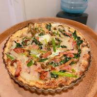 すごく美味しかった!パイよりもおからの方が好きです!中身は牛乳100ml、卵2個、ピザ用チーズに変更。味付けはレシピ通り。ほうれん草とベーコンと玉ねぎを炒めて入れました。18cmのタルト型でオーブンでおからを200度20分焼き、中身を入れて180度で30分焼きました。