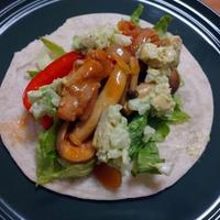 玉ねぎではなく、きゅうりを入れました。味のアクセントにマヨネーズを追加。トルティーヤをフライパンで少し焼いたら香ばしく美味しかったです。