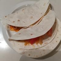 - 7 トルティーヤ生地に1、6の順に乗せ、お皿に盛り付けたら出来上がりです。