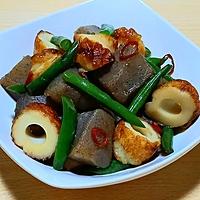 - 1 こんにゃくはスプーンで一口大にちぎります。ちくわは縦半分に切り、薄切りにします。