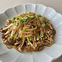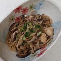 椎茸としめじで作りました。きしめん風しらたきを使ったので白滝太いですが美味しかったです。他のキノコでも作ってみたいです!