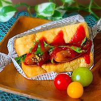カリッと香ばしく焼き上げたトーストに、ジューシーなウインナーやサニーレタスを挟んだ手軽なホットドッグ風アレンジ。厚切りベーコンに変更したり、サラダを多めに詰めたりとアレンジも自在です。パンの耳までカリカリに焼くのがポイントで、バターの香り高い仕上がりは普通のホットドッグ以上の美味しさ。2歳のお子様から大人まで大好評のメニューです。