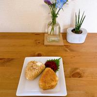 炊きたてだからか、しょうゆを多く入れたせいか、まとまりが弱かったので、4個中2個を焼きにしました。