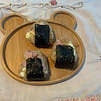 プロセスチーズは包丁にくっついて切りづらいので、包丁で切れ目を入れる程度にして、手でほぐすときれいに切れます。 ごはんは熱い状態で使うと具材が混ざりやすいです。 おにぎりは三角でなくてもお好きな形に握ってくださいね。