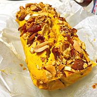 簡単に調理することが出来ました!かぼちゃが入っていることによって、朝から食べられるようなヘルシーな味に仕上がりました!表面には砕いたナッツをのせて食感も楽しめるようにしましたっ