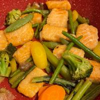 - 4 鮭の両面に焼き色が付いたら1、(A)を加えて中火で炒め合わせます。鮭に火が通り、全体に味がなじんだら火を止めます。