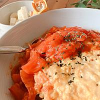 最高!人に出してみたいと思える料理に初めて出会いました。シンプルオムライスが大好きでしたが、チーズ入りの卵もふわふわとろんと堪りません。そしてトマトも柔らかくて卵とよく合う♡(私は砂糖半量か少量でも良さそう。)思い出しても幸せが溢れてきます。美味しかったなあ。