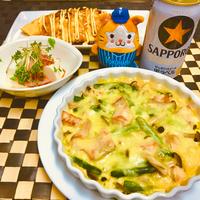 牛乳と卵、チーズのコクがアスパラガスとしめじに絡まって絶妙な美味しさです!全て混ぜ合わせて、あとはオーブンで焼くだけなので、簡単お手軽にパパッと作れます。パンと一緒に食べたり、そのままお酒のおつまみにしても美味しいですよ。お試しください。