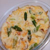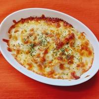 - 6 耐熱皿に入れて、ピザ用チーズをのせ、オーブントースターでチーズが溶けるまで10分焼き、パセリをかけて完成です。