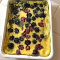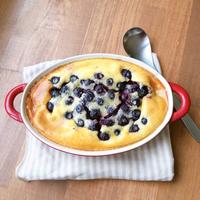 ブルーベリーたっぷりの甘酸っぱいクラフティです。プリン生地に薄力粉を加えると、もちもちとした食感に仕上がりますよ。難しい手順を省いた、お手軽スイーツです。簡単にお作りいただけますので、ぜひお試しくださいね。