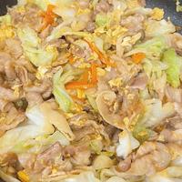 豚コマで代用。キャベツから水分が出るので調味料は少し多めに入れたほうがいいです